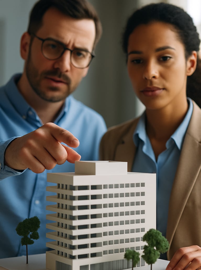 Acompanhamos os investidores na seleção de projetos com elevado potencial, em colaboração com parceiros de confiança promotores, arquitetos e construtores de forma a garantir um processo seguro, estratégico e transparente.